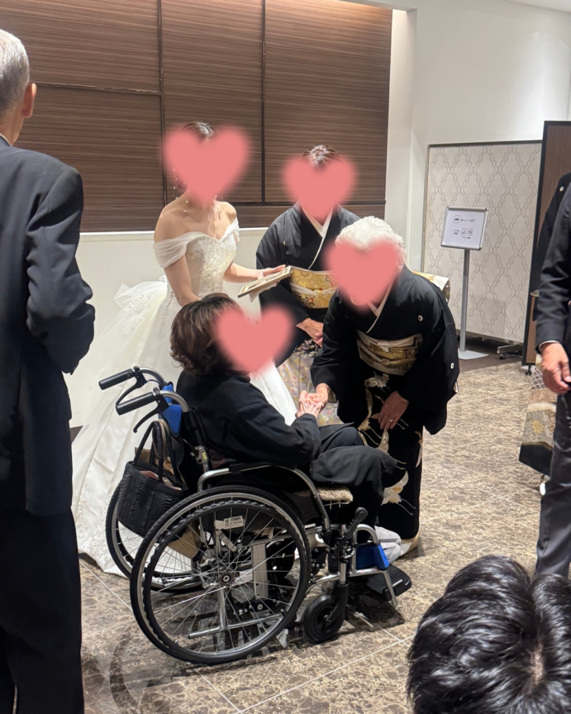 式場に到着して、親族の写真撮影、式、披露宴全て無事に参加が叶い、終始嬉しそうな様子でした。