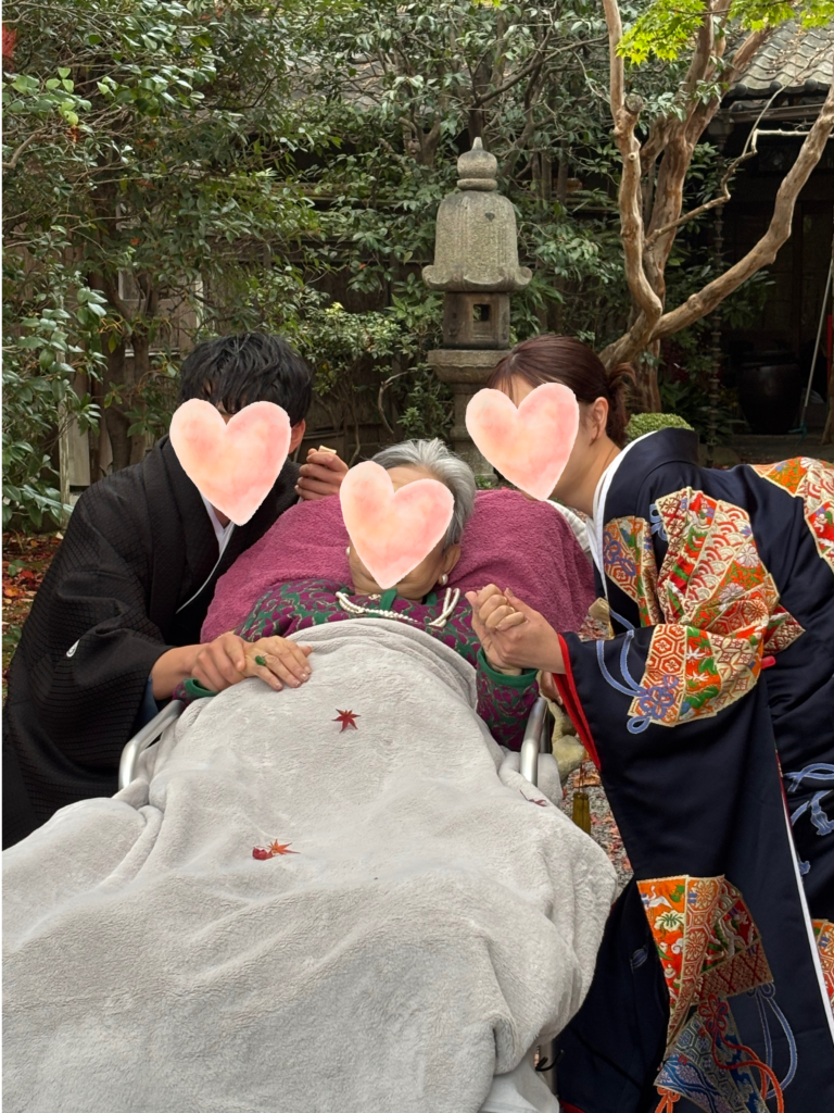 今回、ご自宅で癌性疼痛のコントロールをされながら過ごされている利用者様をお孫さんの結婚式の前撮りにお連れしました。